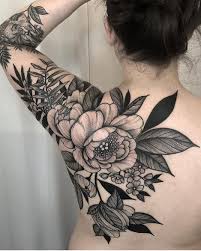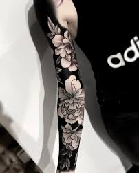 A Few of the Best Black Flower Tattoos A design of black flowers in ink tattooed on your body for a lifetime. Buy Original creative t-shirts apparel and home accessories. For the sportsman who wants to immortalize his playing number on his arm with a tattoo with added details such as the maple leaves and peonies this flower tattoo idea can be explored.