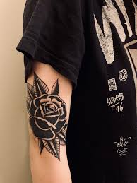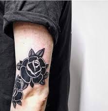 Black traditional rose tattoo on the right elbow. Thousands of new high-quality pictures added every day. Its highly skilled work.