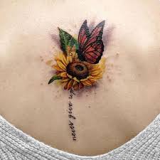 This beautiful tattoo encapsulates opportunity satisfaction and magnificence. Both sunflower and butterfly tattoo designs can represent a persons faith. This butter flower is a good option for butterfly tattoos on the back.