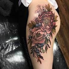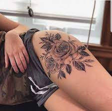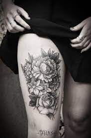Floral thigh tattoo. Floral thigh tattoos are a great way to adorn the legs. 2272021 Thigh tattoos create by far the best effect because there is a lot of space on the body and you can go crazy with the size of the tattoo and selected flowers. They are also a dramatic and meaningful tattoo being associated with love and beauty.