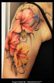 Lily and hibiscus tattoos. I say that after every one. One very popular tattoo is a hibiscus flower. This beautiful example shows two red.