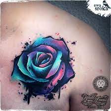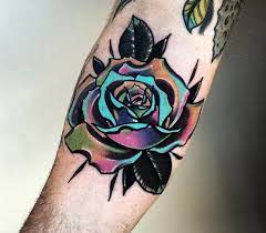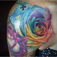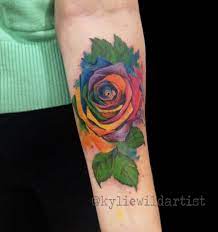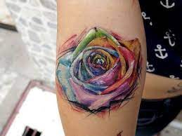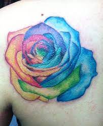 Realistic Inspiration Inkstinct. Some love red roses some love white or blue but a multi-colored tattoo beats them all. This painting-style rose looks like it wants to reach out for the sun.