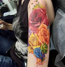 Colour roses tattoo by mike. Tattoo Ideas on the Socials. A multi-colored hand is shown holding a multi-colored pencil in this off the wall tattoo.
