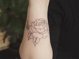 9292018 A simple and medium-sized peony tattoo on the inner bicep. 8262019 The structure is pretty simple too. The flowers symbolize many things including good fortune romance compassion and more.