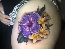 The variety of hibiscus tattoo design is infinite. A person who wants the world to know about their wealth or connection to royalty would go with a purple flower. You can use these flowers with any other style that you can think of from a standalone flower to incorporated into tribal patterns or used in Japanese style sleeves.