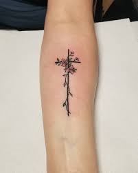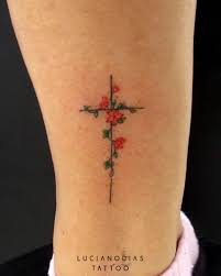 One of the most trusted and faithful icons is a cross tattooIn general small cross tattoos are most popular among cross tattoos. 812019 Floral tattoos have become common elements in the tattooing work as most of the tattoos are incorporated with flowers. The simple tattoo representation that displays a tiny cross surrounded by colored flowers shows that the woman embraces her spirituality with a beautiful charm.