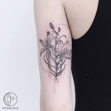 It is hard to imagine feminine tattoo designs without flowers as the terms feminine and flowers go hand in hand. Black And Grey Ink Tiger Lily Tattoo On Half Sleeve. Black And Grey Tiger Lily Tattoo Image.