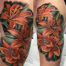Beautiful Tiger Lily Tattoo Design. Tiger lily tattoo is one of the most popular tattoos because of its fiery attractive looks which appear as good as the original flower. This one may be a little difficult to do as instead of solid colors to draw the tiger lily more subtle shades have been usedIt has a dream like quality that makes the tattoo look very ethereal and cool.